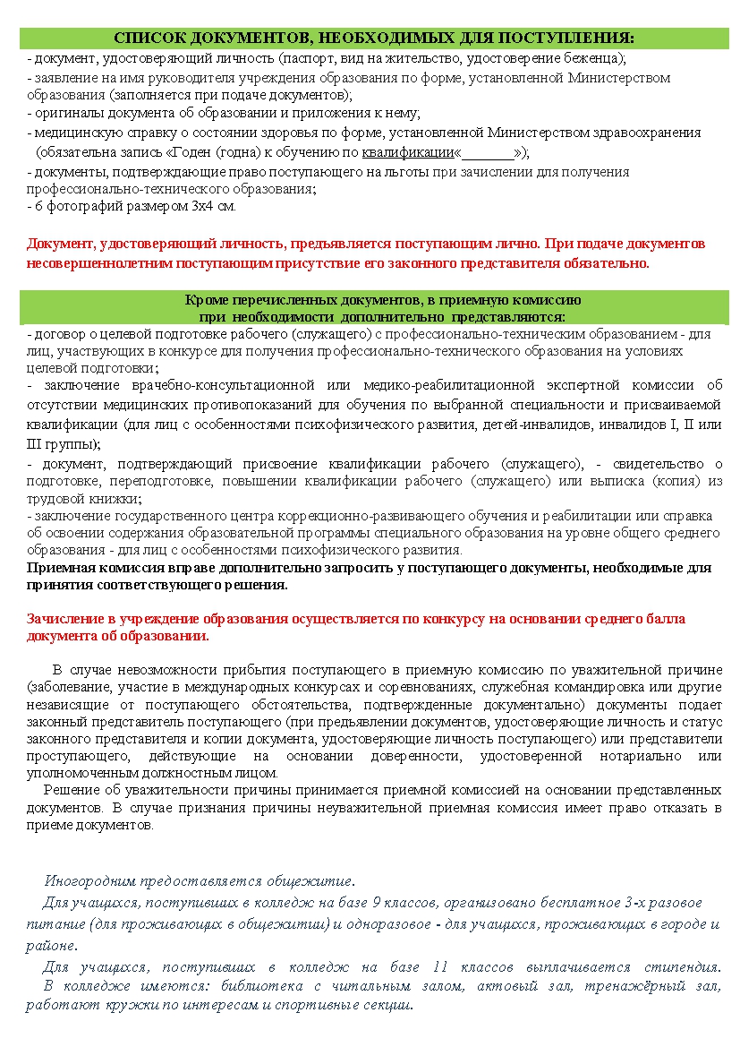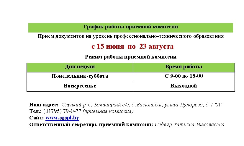 Приемная комиссия » Слуцкий государственный индустриальный колледж