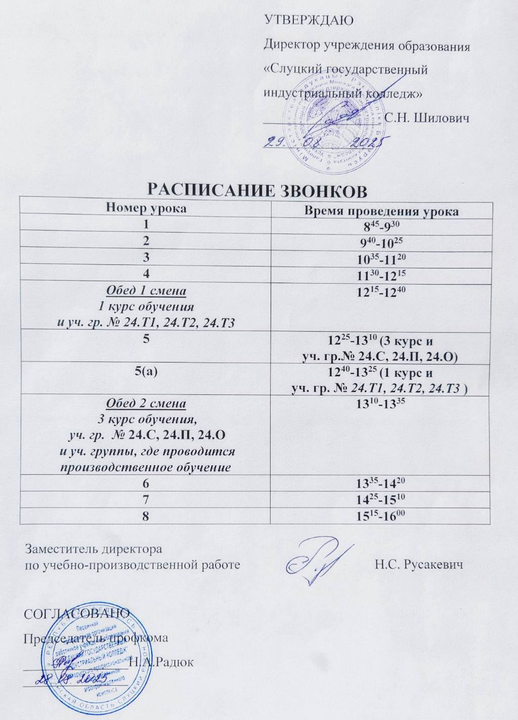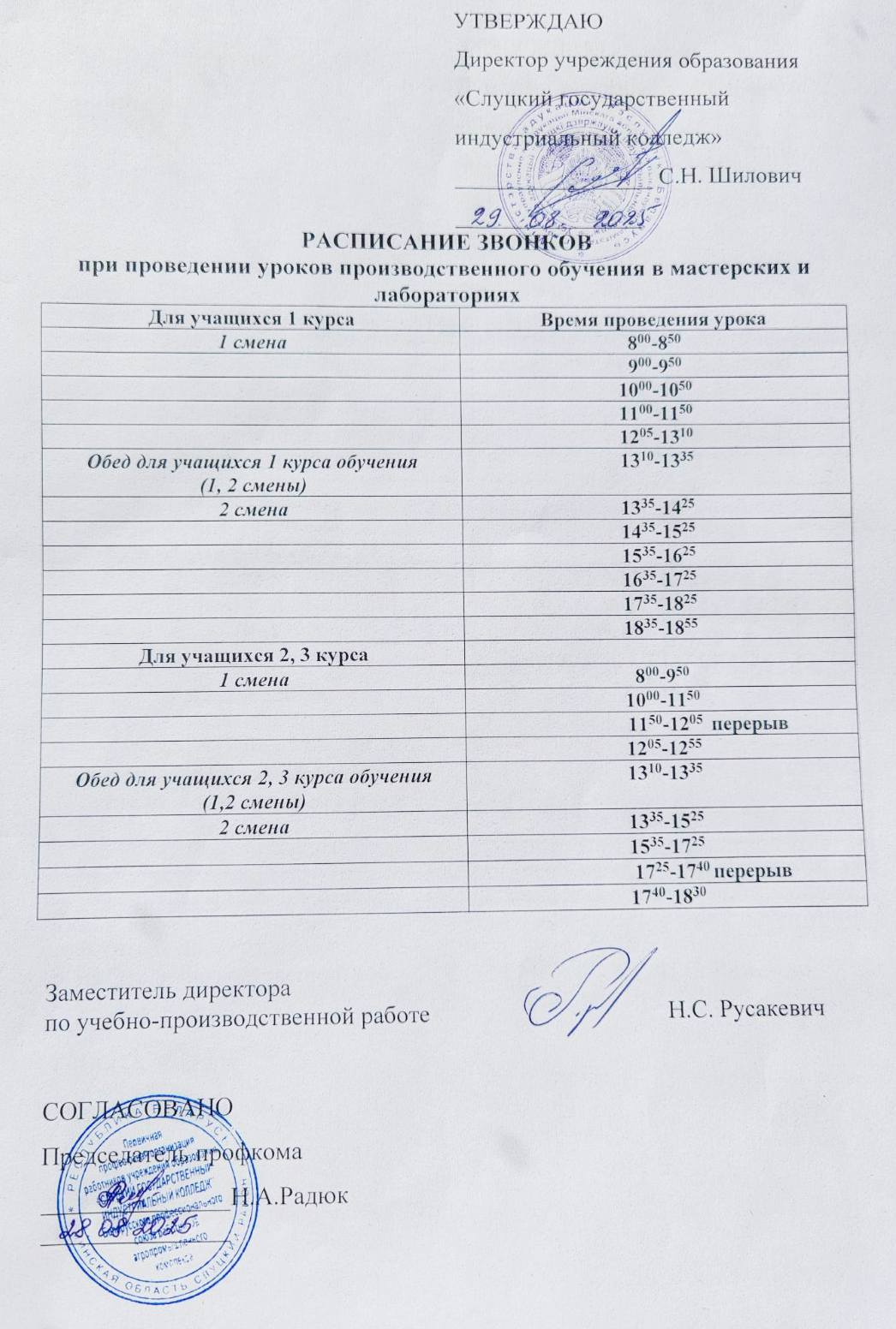 Расписание звонков » Слуцкий государственный индустриальный колледж