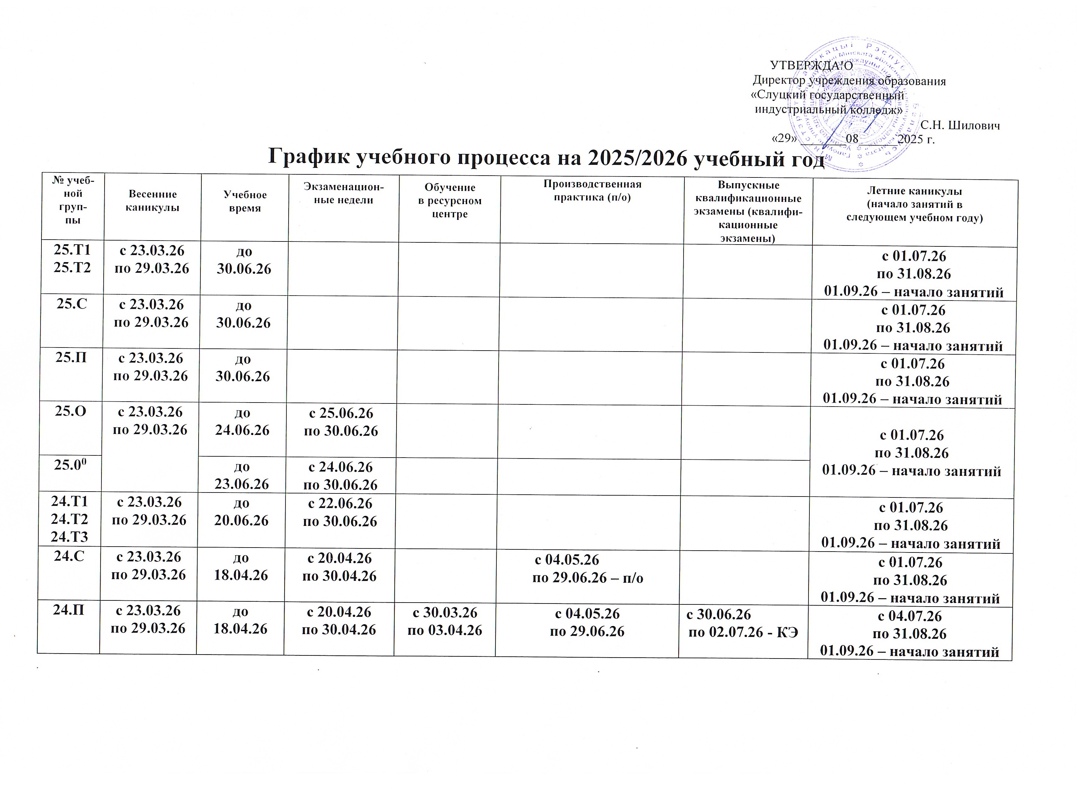 График учебного процесса » Слуцкий государственный индустриальный колледж